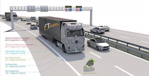 En este aspecto, Mercedes ha dado un paso más ya que el concept Future Truck 2025 es casi una realidad. Sobre la base de un Mercedes Actros, se ha desarrollado un sistema de conducción semiautomática que ha sido ya probada en condiciones reales. De hecho, este sistema ha sido analizado en una sección de aproximadamente 30 kilómetros en situación real de conducción, es decir, en una autopista abierta, en los alrededores de Magdeburgo, en Alemania, con resultados muy prometedores ya que todavía está en la fase inicial de su desarrollo.