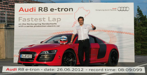 Audi apuesta fuerte por la electricidad como fuente energética y deja claro que la relación entre deportividad y ecología no está reñida, por eso el R8 E-Tron, una versión que prescinde por completo de carburantes fósiles en favor de la energía eléctrica y que llegará en 2013, ha logrado batir el record de velocidad en el mítico Nurburgring.