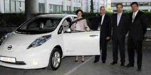 El Ministro de Industria, Turismo y Comercio español, Miguel Sebastián, y la Secretaria de Industria, Teresa Santero, han probado hoy el primer vehículo 100% eléctrico fabricado masivamente, Nissan LEAF, en un recorrido por Madrid.