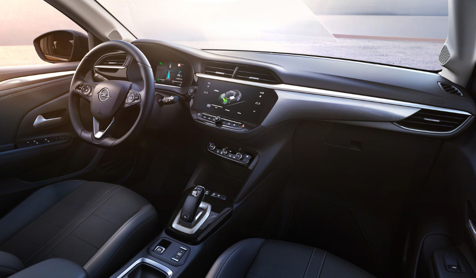 En el interior del habitáculo del Opel Corsa-e podremos apreciar que la tecnología y la digitalización se hacen presentes, así como también la calidad en el acabado y utilización de los materiales empleados para el revestimiento de sus paneles, molduras y tapizado en general, dichos aspectos pueden ser apreciados principalmente en su cuadro de instrumentos digital el cual ofrece una gran cantidad de servicios digitales en línea los cuales permiten realizar consultas que resultan muy útiles para la conducción, como por ejemplo, el estado del tráfico en tiempo real; además equipa un sistema de infoentretenimiento Multimedia Navi el cual puede ser controlado a través de una pantalla táctil de siete pulgadas, aunque también ofrece la opción de poder elegir el sistema Multimedia considerado tope de gama en el cual la pantalla táctil mediante la cual puede ser gestionado aumenta su tamaño hasta las diez pulgadas.