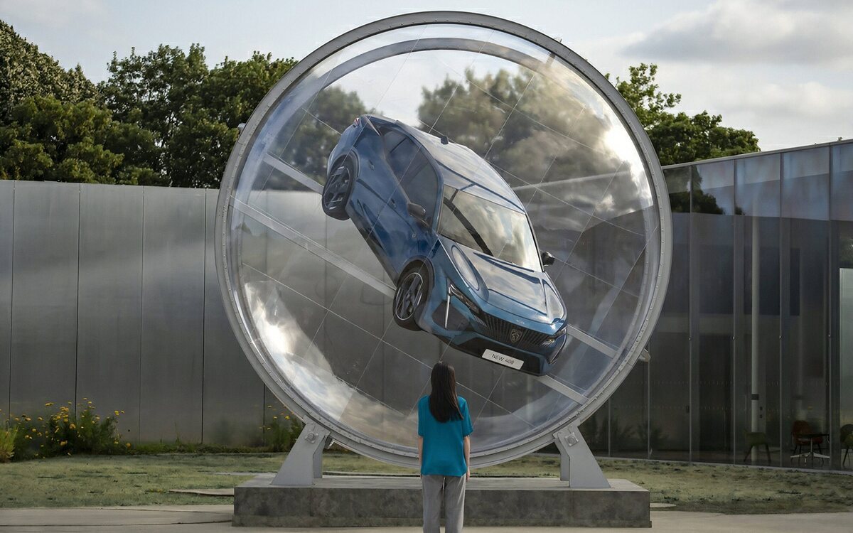 Estos especialistas del desarrollo de instalaciones originales han creado este expositor único; con "La Sphère" es imposible saber lo que está arriba y lo que está debajo ¿Cómo puede el PEUGEOT 408 girar de modo invertido o desplazarse de una manera tan inédita? La respuesta es esta esfera transparente que envuelve el vehículo y lo muestra desde todos sus ángulos.