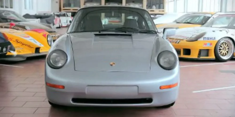 En este caso se trata de un modelo laboratorio del 911 destinado a pruebas aerodinámicas, en el que se destaca claramente un frontal similar al que más tarde veríamos en el prototipo Grupo B, concept que derivaría en el 959 de producción que todos conocemos.