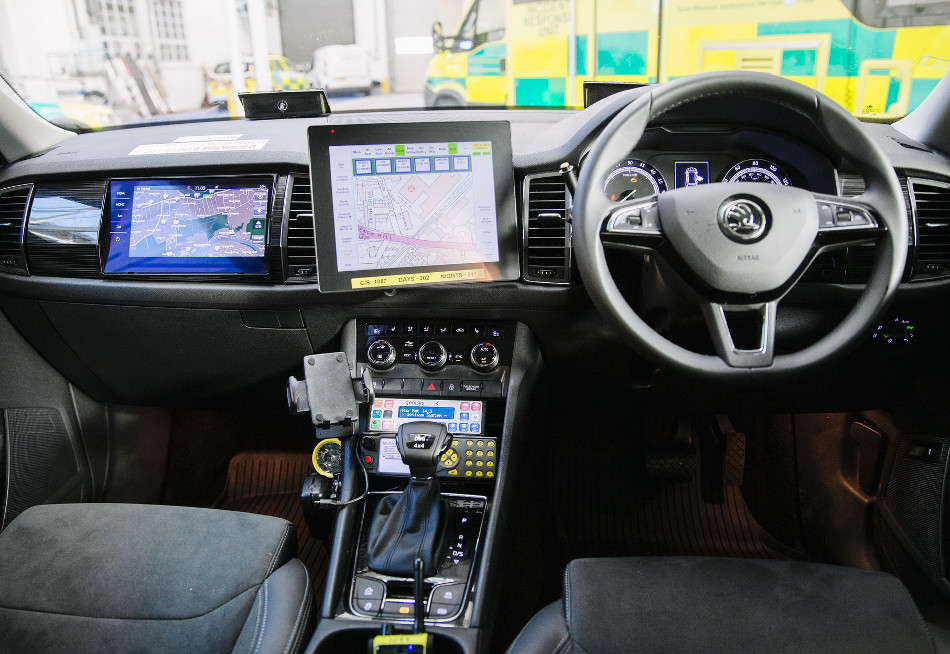 En lo que respecta a su parte interna hay que destacar que también se realizaron ciertos cambios importantes, donde el socio oficial de Skoda retiró los dos asientos adicionales en el maletero y rediseñó el espacio para que se adaptara al equipo de salvamento, incluida una combinación de caja fuerte incorporada para almacenar drogas y un extintor de incendios. Si ponemos atención al frente del habitáculo encontraremos un tablero de instrumentos que también ha sido modificado, y la compañía agregó una segunda pantalla en la consola central en ángulo hacia el conductor que contiene información relacionada con las llamadas al 999. Esto trajo como resultado que el sistema de infoentretenimiento se trasladara al área de pasajeros y se incorporara al tablero.