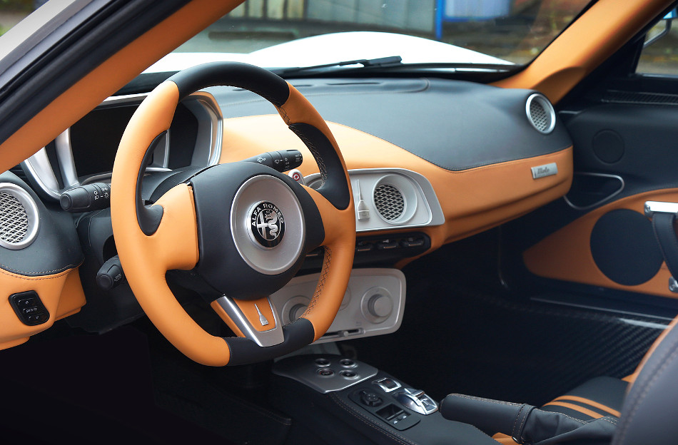 Al igual que su carrocería, la parte interior de este coche también sufrió una profunda renovación, por lo que en el interior de su habitáculo podremos apreciar que se ha puesto un especial cuidado en el acabado y la selección de materiales utilizados, siendo los elegidos una tapicería de piel en color camel y negro que se puede apreciar tanto en sus asientos, consola central, salpicadero y volante, así como también algunos componentes fabricados en fibra de carbono y otros en aluminio.