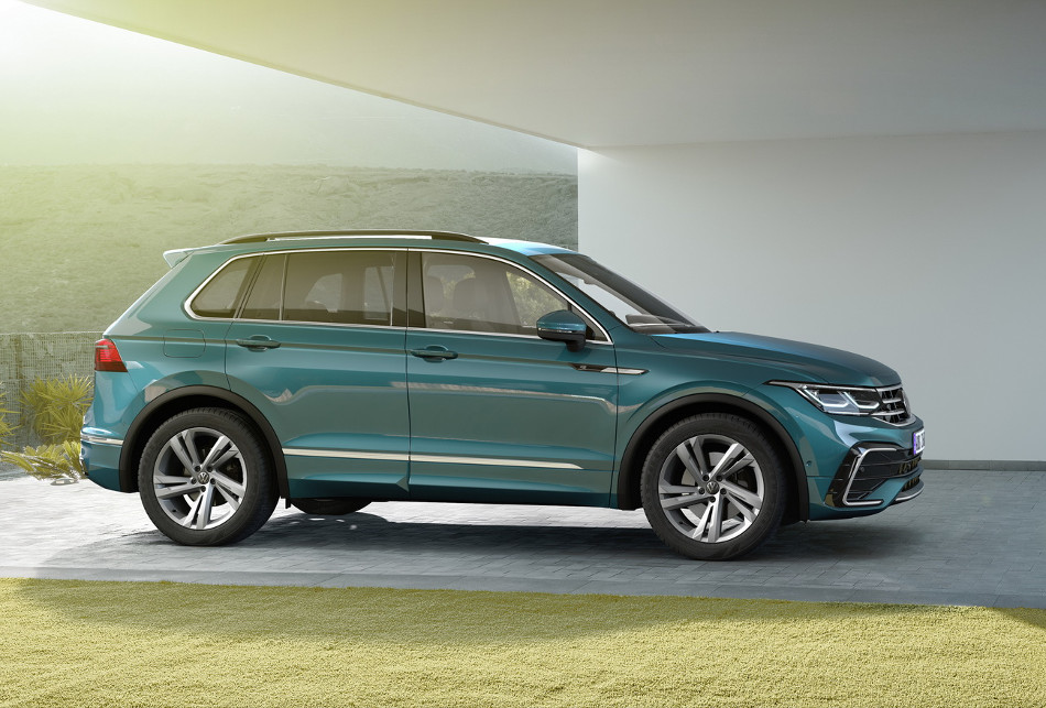 El nuevo Tiguan Elegance está equipado con llantas de aleación de grafito oscuro "Auckland" de 19 pulgadas, faros LED de matriz, techo corredizo panorámico, molduras cromadas alrededor de las ventanas, iluminación ambiental de 30 colores, asientos delanteros con calefacción y un grupo de instrumentos digitales de 10.25 pulgadas.