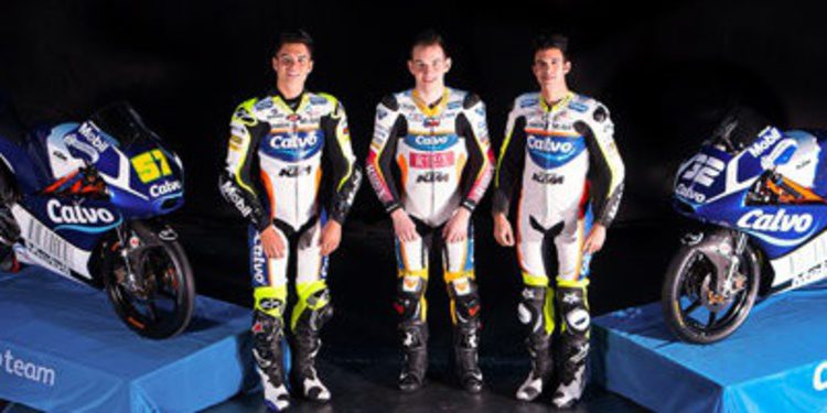 Pocas horas antes de la presentación del Estrella Galicia 0,0, también se presentaba en Madrid uno de los equipos que está llamado a ser rival de esta estructura, algo lógico si tenemos en cuenta que son el vigente campeón de la categoría de Moto3. En un escenario inmejorable y con mucha solera en la noche madrileña, el Calvo Team ha presentado su proyecto 2014 en el Teatro Kapital de Madrid. En este acto han estado presentes los tres pilotos que competirán con las KTM oficiales y que son el español Isaac Viñales, el brasileño Eric Granado y el piloto de la República Checa Jakub Kornfeil.