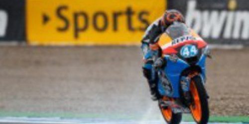Los pilotos de Moto3 se han encontrado la pista mojada por primera vez en el día, ya que en la primera sesión de entrenamientos libres la lluvia solo les visitó ocasionalmente en los tres últimos minutos. Esto ha provocado que los pilotos y equipos se dedicasen a preparar todos los settings sobre mojado.