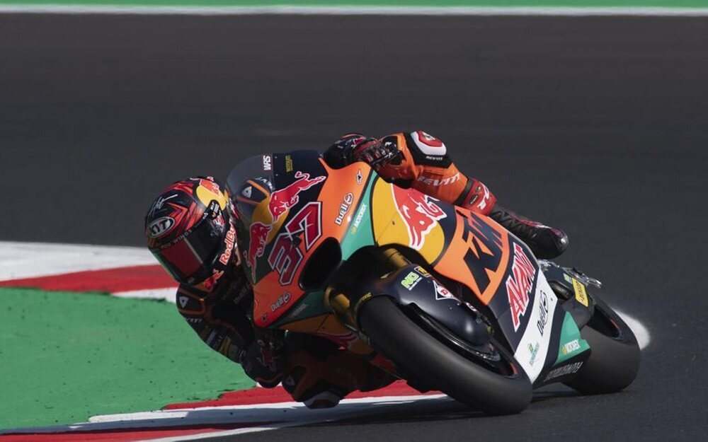En una sesión que se vio marcada por la meteorología, el tiempo de Augusto Fernández baitó al piloto tailandés del Idemitsu Honda Team Asia, Somkiat Chantra, por tan sólo 84 milésimas con el otro piloto del Red Bull KTM Ajo, Pedro Acosta que viene de ganar en Aragón, completando las tres primeras posiciones. Ai Ogura, el piloto local, terminó este viernes colocado en la cuarta posición de la tabla de tiempos. Cerrando las cinco primeras posiciones se colocó el piloto del Greisni Racing Moto2 Filip Salac.