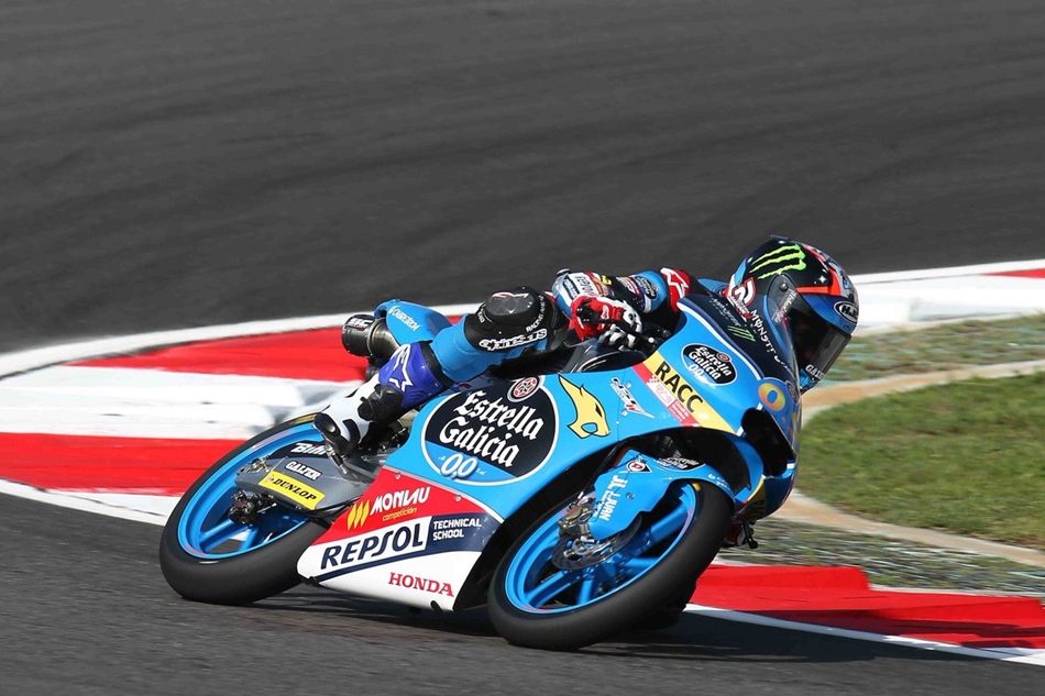 El sudafricano volvía a estar en primera fila, recuperaba la confianza en condiciones de mojado y lograba conseguir la Pole, rebajando el crono del español en tan solo 93 milésimas. Por su parte, el piloto del Estrella Galicia 0,0 se tenía que conformar con la segunda posición, pero mostraba un ritmo tanto en sesiones de libres como en la cronometrada realmente rápido. En tercera posición ha finalizado Francesco Bagnaia que con una Mahindra que está dando pasos hacia adelante agigantados en su particular evolución, ha conseguido acabar menos de una décima de la segunda plaza, mostrándose como en el trazado de Sepang.