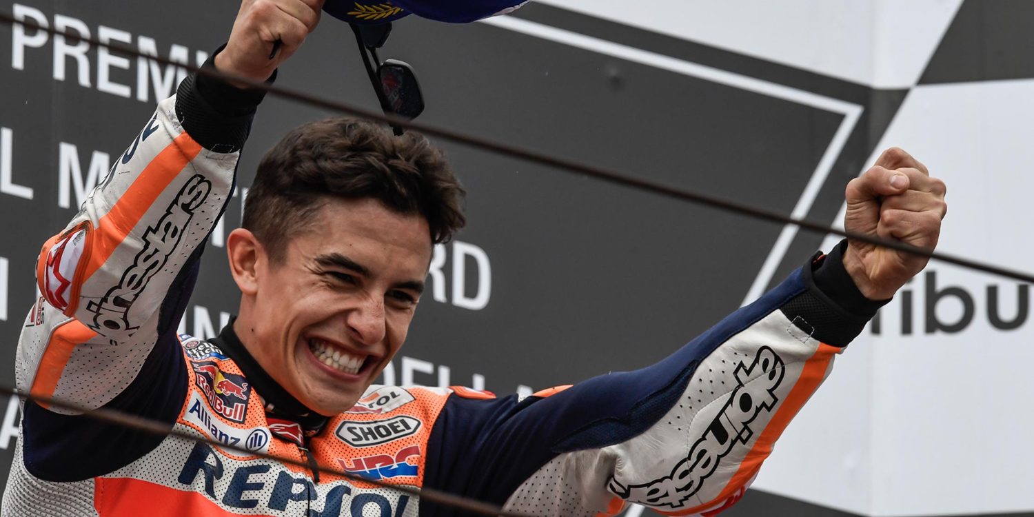 De poco ha servido pues la pole marcada ayer por Maverick Viñales o el buen ritmo demostrado por las Ducati en seco. Hoy la pista no estaba para hacer demasiadas filigranas ni mucho menos para jugársela. A no ser que te llames Marc Márquez.