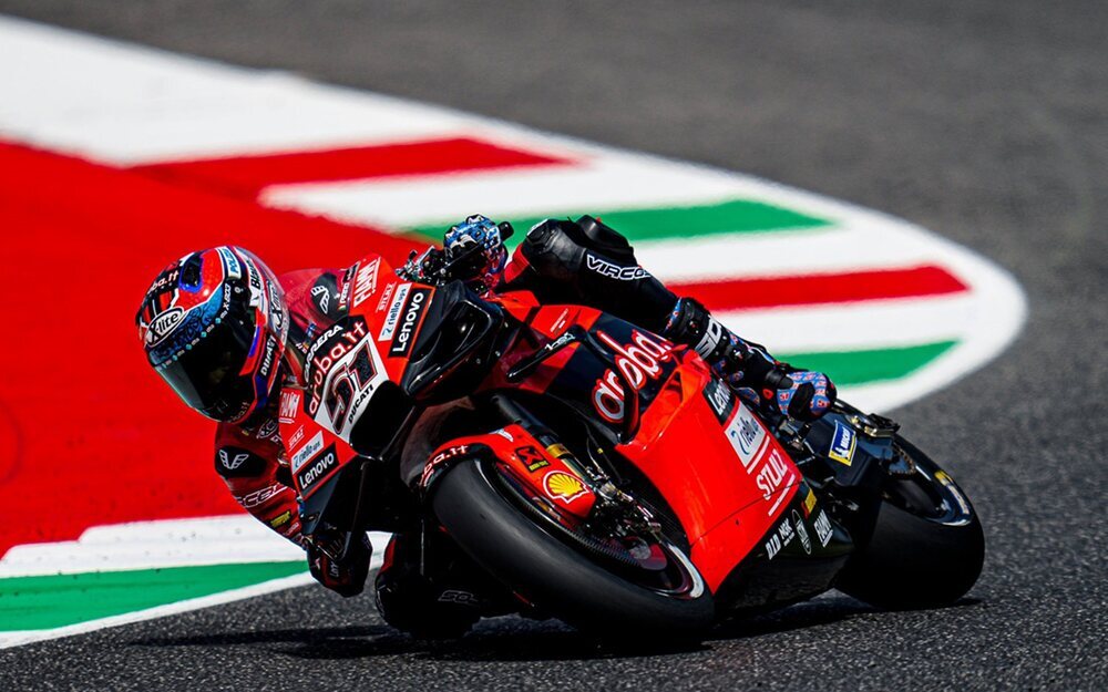 El italiano que está haciendo un wild card, ha marcado el mejor registro matinal encabezando una tabla de tiempos donde hasta seis Ducati han estado presentes en el top 10. Entre los tres primeros registros han estado por parte del Mooney VR46 Racing Team, Luca Marini, y por el del Prima Pramac Racing, Jorge Martín. Buen inicio para la estructura de "Il Dottore" con Marco Bezzecchi en la cuarta plaza y con una gran actuación por parte del piloto español del CrytoDATA RNF MotoGP Team, Raúl Fernández, que completó el top 5.