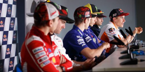 Valentino Rossi, Maverick Viñales, Marc Márquez, Dani Pedrosa, Cal Crutchlow y Jorge Lorenzo han dado el pistoletazo de salida al Gran Premio de España en la sala de prensa del circuito de Jerez. El liderato de Rossi, la resaca del triunfo de Márquez en Austin y las sensaciones de Lorenzo con la Ducati han centrado el interés de los periodistas presentes.