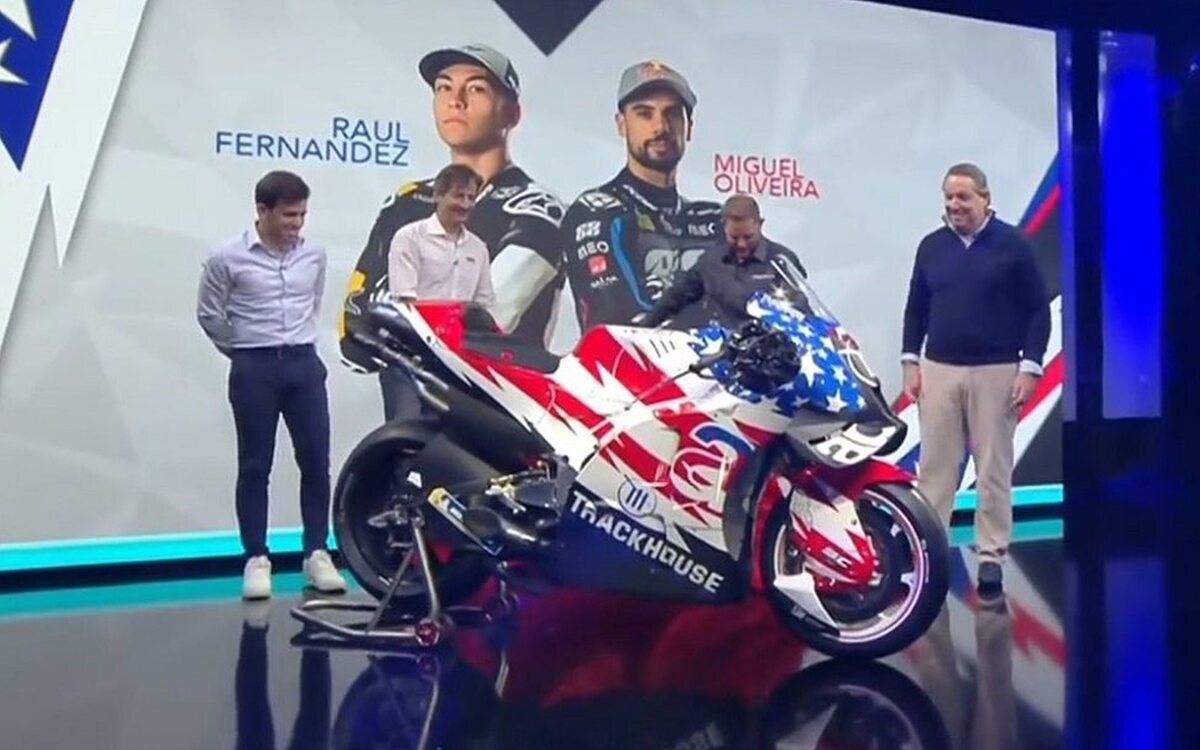 Durante esta presentación en suelo italiano, Trackhouse ha mostrado unos colores que claramente hacen homenaje al país americano y con una decoración que hemos visto usar al piloto de la tierra, Nicky Hayden, último gran triunfador en la categoría reina con su título en la temporada 2006. La estructura mantendrá en sus filas al piloto español Raúl Fernández, quien cerró unos test en Valencia dejando muy buenas sensaciones y con el piloto portugués Miguel Oliveira que querrá empezar la temporada 2024 de mejor forma después de un año plagado de lesiones.