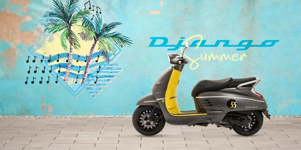 Peugeot aprovechó esta época de verano para dar a conocer su nueva creación. El mismo ha sido inspirado en el famoso Peugeot S55 de los años 50, el primer scooter que la marca llevó al mercado de las motos, pero que hoy renace con tecnología del presente. Se llama: Django Summer, un scooter urbano, fresco y ligero que suma el aspecto neo retro de otra época y que estamos seguros robará todas las miradas no solo de los fanáticos de la marca del León, sino de todos lo que buscan sentirse libres y relajados disfrutando de cada día del verano.
