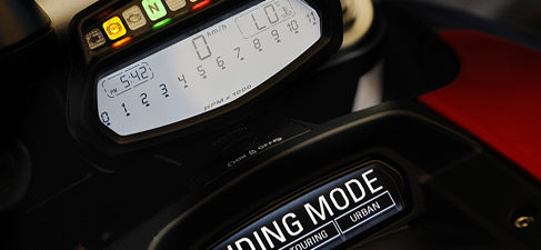 El cuadro de instrumentos guarda una sorpresa al conductor, se trata de la división en dos pantallas digitales de las que la parte superior muestra los datos habituales. La novedad está en la parte inferior que está incluida en el propio depósito. Se trata de un display de TFT, a color, donde se muestra el modo de conducción elegido y donde además se puede controlar la intensidad de control de tracción.