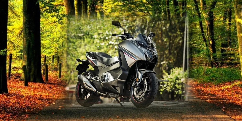Todo esto asociado a una caja automática DCT de doble embrague, es decir, posee 2 modos automáticos y uno manual a través de un sistema de levas en el manillar, de tal manera que los modos automáticos son el D, lo que significa que es el genérico y el más eficiente, y el S es mucho más deportivo el cual se divide en otros tres sub-modos, por lo que un control de la inclinación ascendente y descendente se encarga de gestionar las marchas automáticas en cualquiera de los modos seleccionados, y como es una moto grande de mucho poder, era necesario colocarle un buen sistema de freno, ABS más unos buenos frenos delanteros de disco de 320 mm y el trasero de 240 mm. La suspensión trasera posee un mono amortiguador Monoshock ajustable ubicado en la precarga del muelle con el mismo recorrido que el frontal, es decir, esta es de tipo basculante de doble brazo en aluminio.