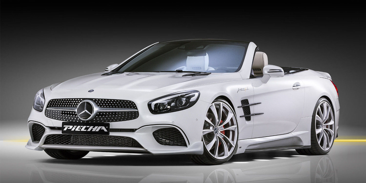 Piecha nos sorprende de nuevo con su rediseño del descapotable alemán Mercedes-Benz al aportarle un toque picante. Sus acabados estéticos resaltan en gran manera. Empezando con su frontal podemos ver que incorpora una nueva parrilla central en forma de diamante, su logotipo es de una mayor dimensión que el original así como también lo son los faros, ahora más alargados. Su faldón delantero es más agresivo.