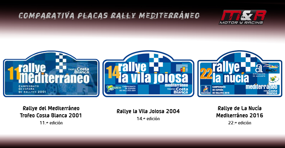 Al volante, primero, del Fiat Punto S2000 y más tarde sobre el Porsche GT3, el pentacampeón se llevó cinco triunfos consecutivos, lo que lo situó en lo alto del palmarés. Entonces, tras 2011, problemas económicos impidieron a la A.I.A. continuar organizando la prueba, pero el Mediterráneo ya había calado hondo en el certamen y tal vez por ese motivo han decidido regresar tras cinco años de ausencia, gracias en parte al inestimable apoyo del mencionado Fuster. Lo harán con una nueva nomenclatura, "Rally de La Nucía - Mediterráneo", aunque la misma esencia al fin y al cabo; queda patente al observar la placa del evento, que mantiene el patrón estrenado en 2001.